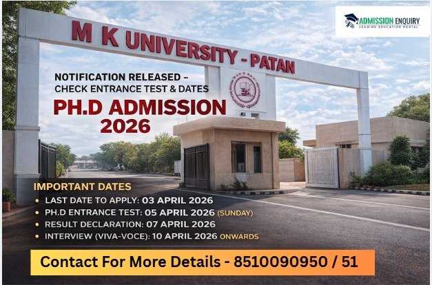 MK University PhD Admission 2026 Notification Released β Check Entrance Test & DatesMK University, Patan has officially released the PhD Admission...